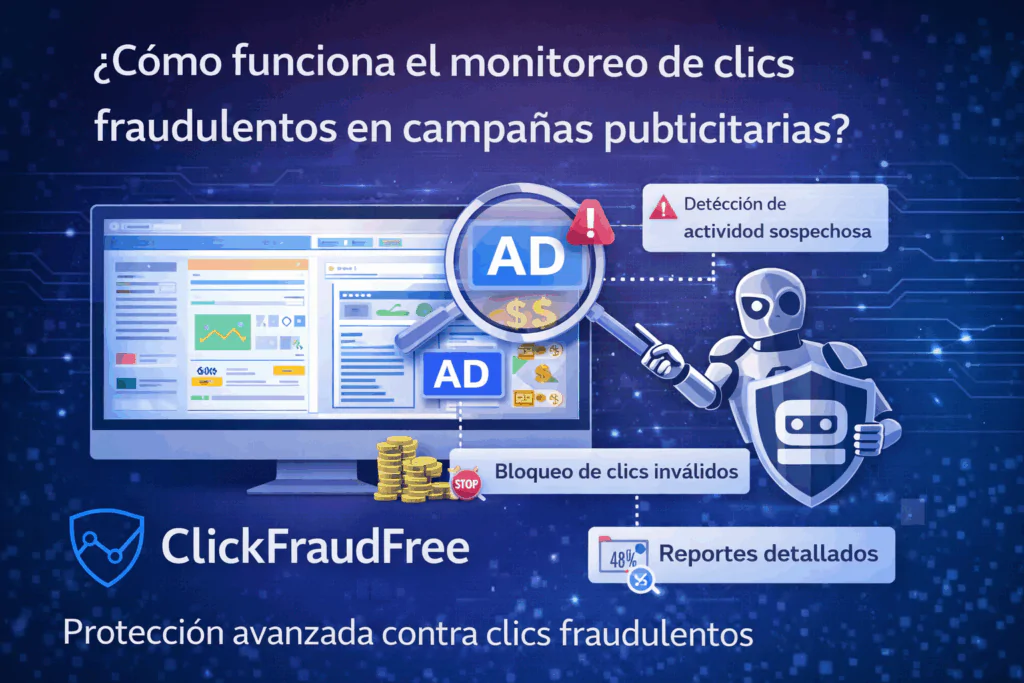 Click Fraud Free se presenta como una solución real contra el fraude de PPC, lo que garantiza que sus campañas publicitarias permanezcan seguras. Proteja su presupuesto, evite el fraude de clics y garantice un rendimiento óptimo con nuestras medidas de seguridad avanzadas.