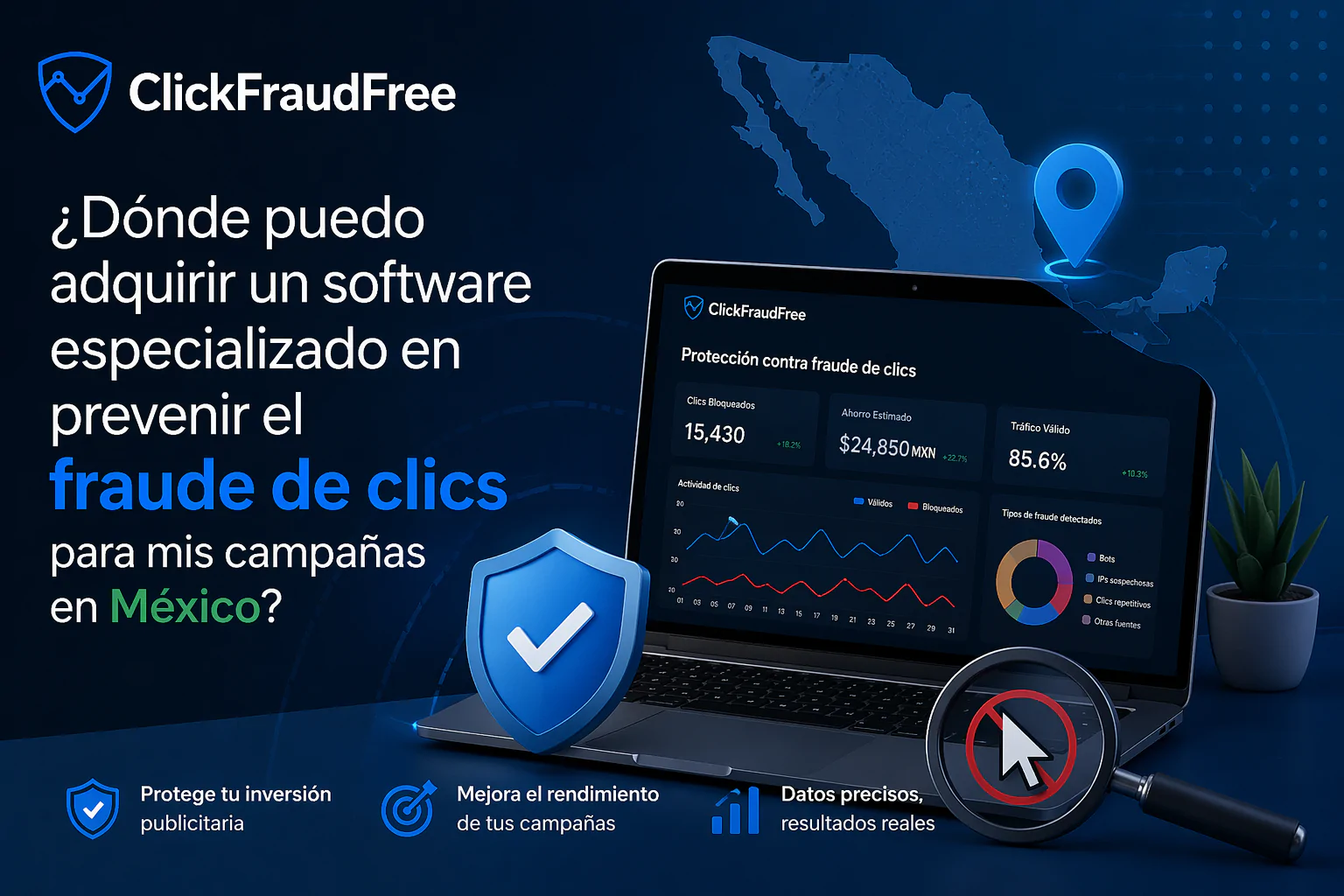 Protegerse del fraude de clics ayuda a asegurar que cada peso invertido se traduzca en resultados reales. Además, permite a las empresas concentrarse en la creación de contenido atractivo y en la optimización de sus campañas para obtener un mejor retorno de inversión. Implementar un software especializado, como el que ofrecemos en ClickFraudFree, asegura que las campañas publicitarias se ejecuten de manera eficiente y efectiva.
